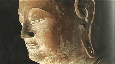 側の金堂には、本尊釈迦如来立像(国宝)をはじめ、十一面観音立像(国宝)など木造の貞観仏5体が安置されている。視聴覚教材として制作され、仏