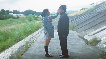 女子生徒に次々と”付き合ってください”と告白するたくさんの仲間たち。2話:「TAKE」ロケ撮影での「TAKE」。カメラを回し始めてから止
